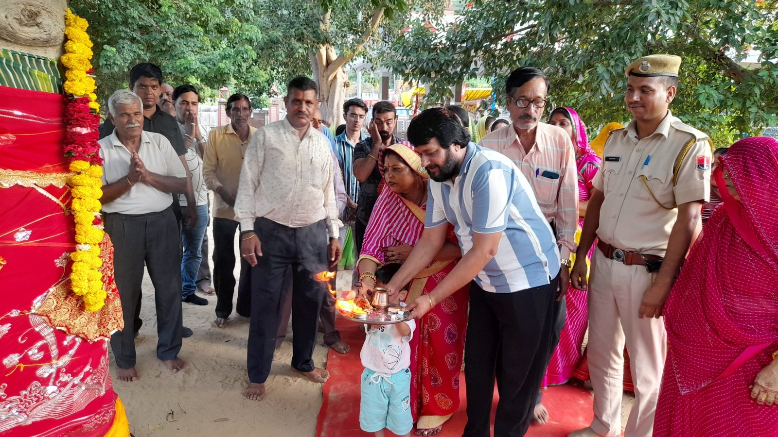 नसीराबाद ( योगेन्द्र बुलचन्दानी ) राज गढ़ मसाणिया भैंरव धाम स्थित चक्की वाले बाबा के मंदिर पर लगे राजा रानी के जोड़े के कल्पवृक्ष के जोड़े की हरियाली अमावस्या के पावन अवसर पर चम्पालाल महाराज द्वारा सपरिवार मंत्रोच्चारण के साथ विधिवत पूजा अर्चना की गई।पूजा के दौरान चम्पा लाल महाराज द्वारा राजा रानी को वस्त्र धारण करवा कर रक्षासूत्र बांधा और प्रसाद का भोग लगाया गया,जिसके बाद राजा रानी कल्प वृक्षों की आरती की गई। पूजा के बाद सभी ने कल्पवृक्ष जोड़े की परिक्रमा कर सुखद जीवन की कामना की। महिलाओं ने कल्पवृक्ष के जोड़े पर रक्षासूत्र बांधकर परिवार की खुशियों के लिए आशीर्वाद मांगा। श्रद्धालुओं व ग्रामीणों ने इस धार्मिक व पवित्र आस्था के पर्व हरियाली अमावस को उत्साह व श्रद्धाभाव से मनाया। रविवारीय मेले के दिन भी हजारों श्रद्धालु जन इस कल्पवृक्ष जोड़े की परिक्रमा कर मनोकामना मांगते है । इस दिन वृक्षारोपण का विशेष महत्व है, जिसको देखते हुए राजगढ़ धाम पर हरियालो राजस्थान के तहत धाम परिसर के आसपास के स्थानों पर लगातार वृक्षारोपण किया जा रहा है। महाराज ने धाम पर आने वाले प्रत्येक श्रद्धालुओं से अपील की है कि वह अपने-अपने स्थानों पर कम से कम पांच वृक्ष जरूर लगाएं। धाम पर व्यवस्थापक ओमप्रकाश सेन, अविनाश सेन, राहुल सेन, रमेश सेन, कैलाश चन्द, ताराचन्द, कपिल,सेन, सागर सेन, मुकेश सेन, यश, मिलन, युवराज, वैभव, भव्य, मिताली, वंशिका, बुलबुल, विष्णुकान्ता, पुष्पा, ड़िम्पल, खुशबू, रेखा, राजकुमार त्रिपाठी, विजय सिंह रावत, प्रकाश रांका, कमल शर्मा, कन्हैयालाल, देवानन्द, सत्यनारायण सेन, राजकुमार, अमिताभ, नवलकिशोर, पुनित, सुरेश, धर्मेन्द्र, कैलाश सेन, विष्णु सेन, बी.एल.गोदारा, राजू चावड़ा, उज्जवल राठौड़, कमलेश सुनारीवाल, पदम जैन आदि सहित बड़ी संख्या में लोग मौजूद रहे