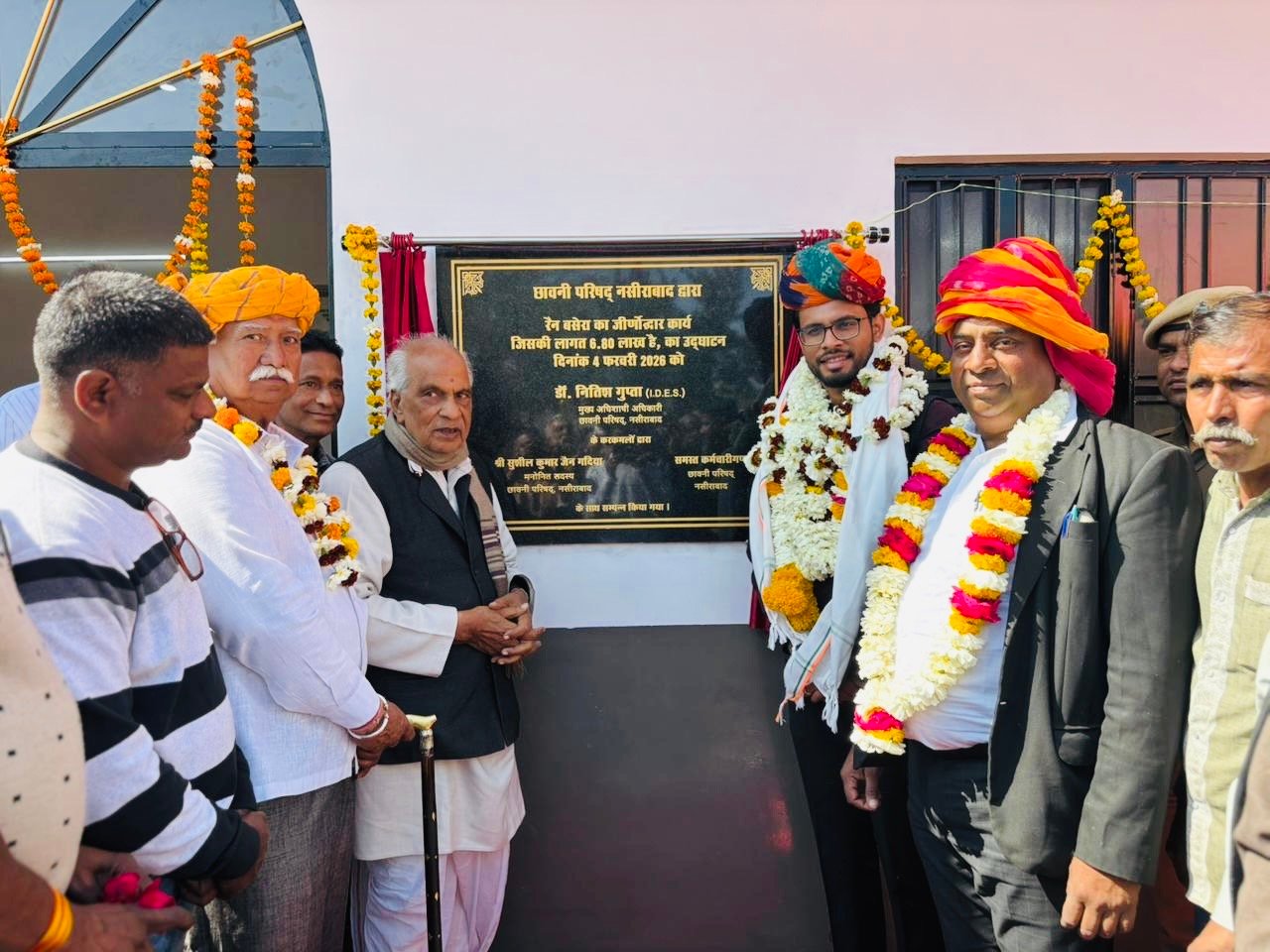 नसीराबाद ( योगेन्द्र बुलचन्दानी ) छावनी परिषद के मुख्य अधिशासी अधिकारी डॉ नितिश गुप्ता ने बुधवार को बहु प्रतीक्षित रैन बसेरा सहित अन्य विभिन्न नवीन विकास कार्यों का उद्घाटन किया इस अवसर पर नागरिक क्षेत्र के मनोनीत सदस्य सुशील गदिया और भाजपा मंडल अध्यक्ष महेश मेहरा सहित क्षेत्र के गणमान्य लोग उपस्थित रहे सबसे पहले सीईओ डॉ नितिश गुप्ता ने ब्यावर बस स्टैंड स्थित नव निर्मित रैन बसेरे के शिला पट्ट का अनावरण किया और रेन बसेरे का उद्घाटन किया छावनी परिषद द्वारा पुराने जर्जर हो चुके रैन बसेरे को शानदार रैन बसेरे में तब्दील कर विकास कार्य की बेहतरीन मिसाल पेश की है वहीं मुसाफिरों के लिए एक शानदार और आरामदेह विश्राम स्थल बना कर आमजन को राहत पहुंचाई है जिसकी नगर वासियो द्वारा मुक्त कंठ से सराहना की जा रही है इस रैन बसेरे के निर्माण में 6.80 लाख रुपए लागत आई है इसके बाद धोबी मोहल्ले स्थित नाले के किनारे बनाए गए नव निर्मित शौचालय का उद्घाटन किया गया जिसकी निर्माण लागत 5.63 लाख आई है और चार-चार स्त्री एवं पुरुष शोचालय बनाये गए है जिससे सब्जी मंडी स्टेशन रोड और धोबी मोहल्ले के लोगों को सुविधा का लाभ मिलेगा, फूला गंज क्षेत्र में स्थित कोली मोहल्ला के नव निर्मित शौचालय और सड़क का उद्घाटन किया गया जिसकी लागत 9.95 लाख रुपए आई है और सबसे अंत में खटीक मोहल्ले में SBI से पोस्टर कॉलोनी तक सड़क और पेवर चौक का लोकार्पण किया गया इस कार्य की लागत 45.14 लाख रुपए आई है इस मौके पर क्षेत्र के लोगों ने छावनी परिषद के मुख्य अधिशासी अधिकारी डॉ नितिश गुप्ता का भाव भीना स्वागत किया और उन्हें छावनी परिषद का विकास पुरुष और अब तक का सबसे लोकप्रिय सी ई ओ बताते हुए उनके कार्यकाल की जम कर तारीफ़ की इस अवसर पर भाजपा मंडल अध्यक्ष महेश मेहरा सामाजिक कार्यकर्ता एडवोकेट नवाब कुरैशी ने भी संबोधित किया और क्षेत्र के लोगों ने सभी अतिथियों का माल्यार्पण कर स्वागत किया