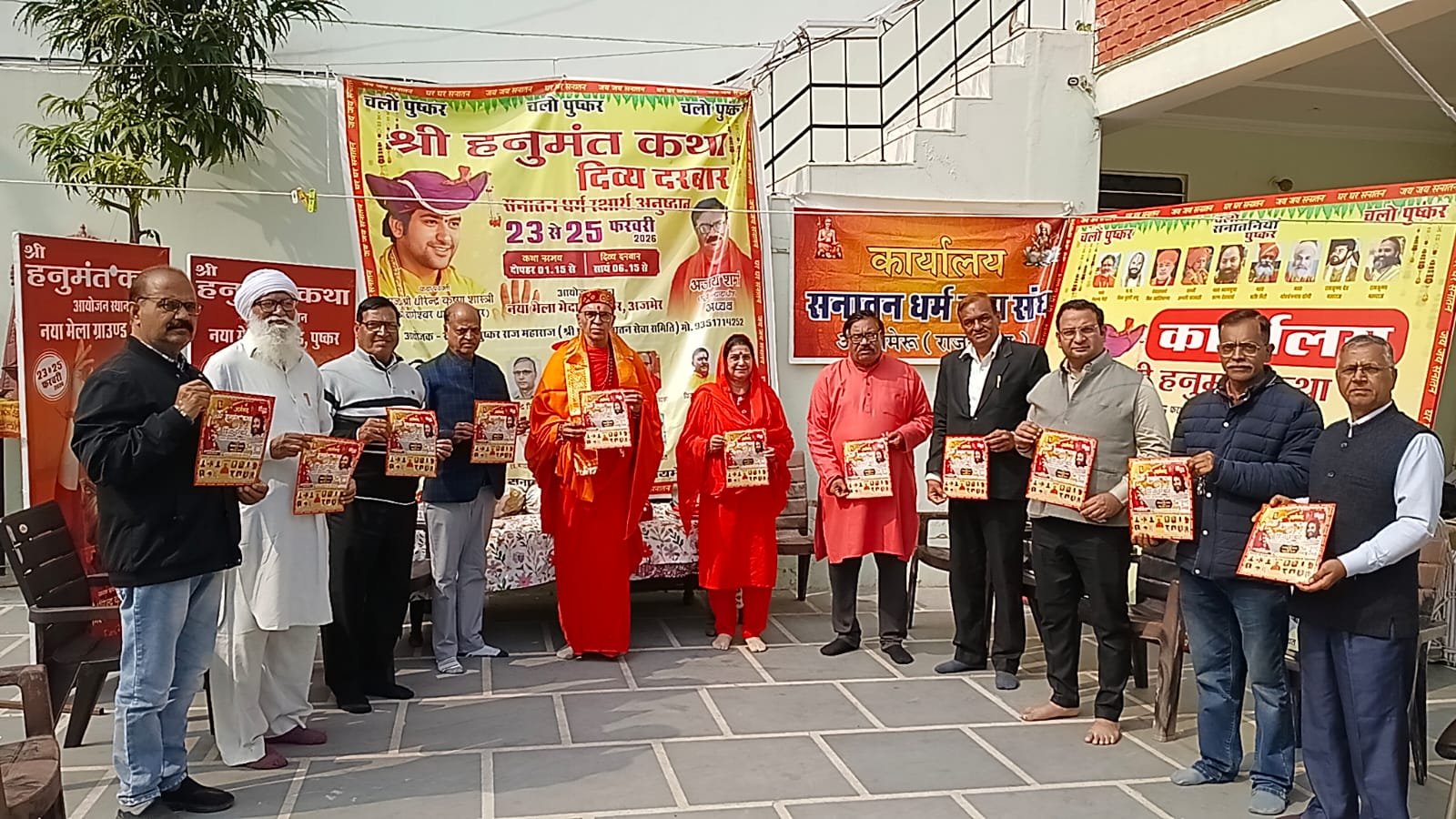 भारत भूमि (सम्पादक – प्रदीप टिक्यानी) अजमेर : निरंजनी अखाड़ा के महामंडलेश्वर नर्बदा शंकर पुरी जी महाराज के करकमलों से गुरुवार को सनातन धर्म रक्षा संघ अजयमेरू राजस्थान के तपस्वी भवन कार्यालय में हिंदू चालीसा तथा 387 अंकित ओम आकृति वाले भगवा सनातन ध्वज का विधिवत विमोचन किया गया। संघ के अध्यक्ष पूर्व न्यायाधीश अजय शर्मा ने बताया कि महाराज जी एक दिवसीय प्रवास पर अजमेर पहुंचे, जहां तपस्वी भवन में उनका स्वागत-अभिनंदन किया गया और धर्म चर्चा के साथ उपस्थित जनों की जिज्ञासाओं का समाधान किया गया। कार्यक्रम के दौरान सनातन धर्म के संरक्षण व प्रचार का संदेश देते हुए हिंदू चालीसा और विशेष ओम ध्वज समाज को समर्पित किया गया। इस अवसर पर महाराज जी को 23 से 25 फरवरी तक पुष्कर में आयोजित बागेश्वर धाम के पंडित धीरेन्द्र कृष्ण शास्त्री जी महाराज की हनुमंत कथा का आमंत्रण भी सौंपा गया। कार्यक्रम में साध्वी गीतांजलि जी, विश्व हिंदू परिषद के सह मंत्री शशि प्रकाश इंदौरिया, डॉ कुलदीप शर्मा, देवेन्द्र त्रिपाठी, विजय कुमार शर्मा, तरुण वर्मा, अशोक पंसारी, राजेंद्र प्रसाद मित्तल, डॉ रामनिवास शर्मा, प्रकाश खन्ना, संजना खटीक तथा तपस्वी गायत्री शर्मा सहित अनेक गणमान्यजन उपस्थित रहे।