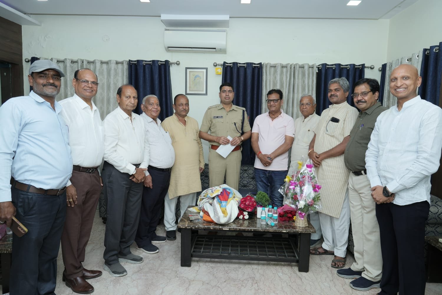 भारत भूमि (कार्तिक शर्मा) अजमेर : अंतर्राष्ट्रीय वैश्य महासम्मेलन अजमेर जिला शाखा के एक प्रतिनिधि मंडल ने पुलिस गेस्ट हाउस में जिले के नवनियुक्त पुलिस अधीक्षक हर्षवर्धन अग्रवाला से शिष्टाचार भेंट कर उनका भव्य अभिनंदन किया। संस्था के जिला महामंत्री उमेश गर्ग ने बताया कि इस अवसर पर प्रदेश उपाध्यक्ष पुखराज पहाड़िया, मुख्य संरक्षक कालीचरण खंडेलवाल और जिलाध्यक्ष रमेश चंद तापड़िया सहित उपस्थित पदाधिकारियों ने पुलिस अधीक्षक का माल्यार्पण कर, शॉल व दुपट्टा ओढ़ाकर तथा बुके भेंट कर स्वागत किया। प्रतिनिधि मंडल ने मिठाई खिलाकर उनका मुंह मीठा कराया और कार्यभार ग्रहण करने पर शुभकामनाएं प्रेषित कीं। इस दौरान वैश्य समाज के पदाधिकारियों ने पुलिस अधीक्षक को श्री सीता गौशाला, अजमेर में आयोजित होने वाले ‘वैश्य संस्कृति एवं एकता महोत्सव’ कार्यक्रम में मुख्य अतिथि के रूप में पधारने का स्नेहिल निमंत्रण भी दिया। इस गरिमामयी भेंट के दौरान कार्यकारी अध्यक्ष गिरधारीलाल मंगल, प्रेमप्रकाश विजयवर्गीय, शैलेंद्र अग्रवाल, सत्यनारायण भंसाली एवं हिमांशु खंडेलवाल सहित समाज के कई गणमान्य लोग उपस्थित रहे।